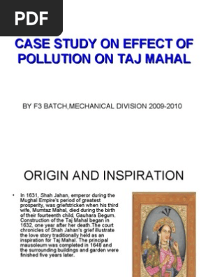 His is the yellowing of the taj mahal which is being caused by air pollution especially sulphur.